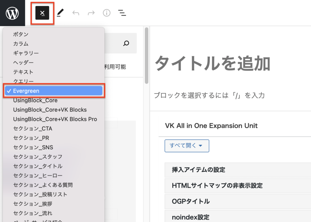 Evergreenのブロックパターンの種類